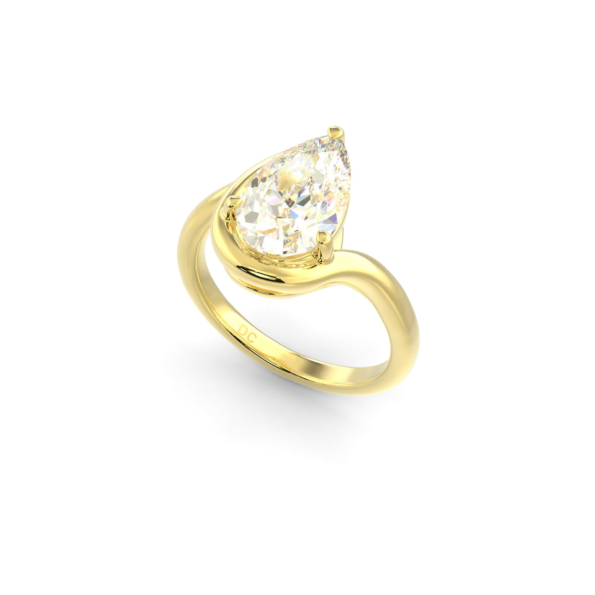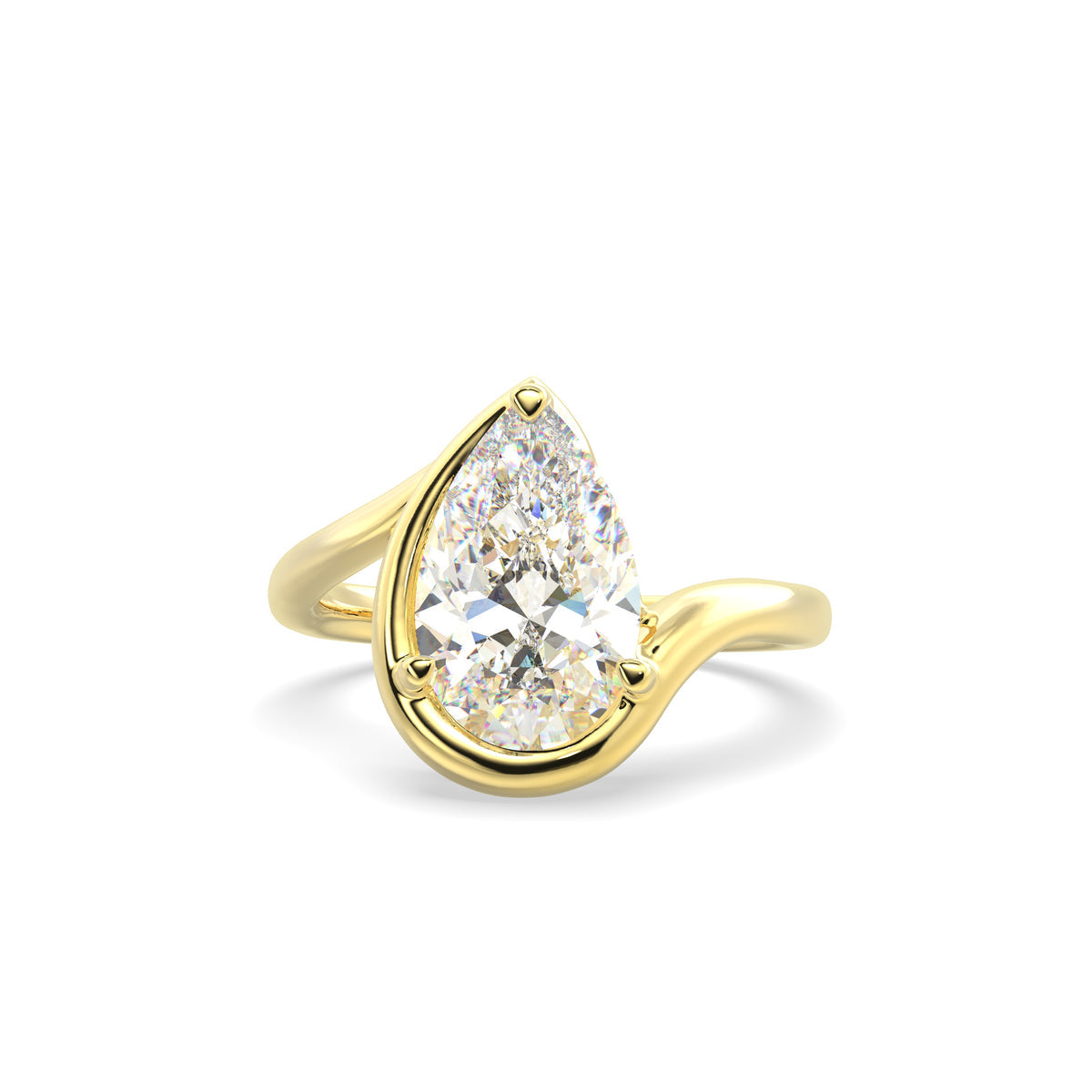 A striking blend of fluid design and timeless brilliance. Crafted in solid 18-karat gold, this sculpted ring wraps gracefully around a luminous pear-shaped diamond, creating a sense of movement and elegance. The curved gold lines cradle the stone in a modern, artistic silhouette that feels bold yet refined. The elongated pear cut enhances brilliance and finger length, making this ring a standout statement for those drawn to distinctive, contemporary luxury.